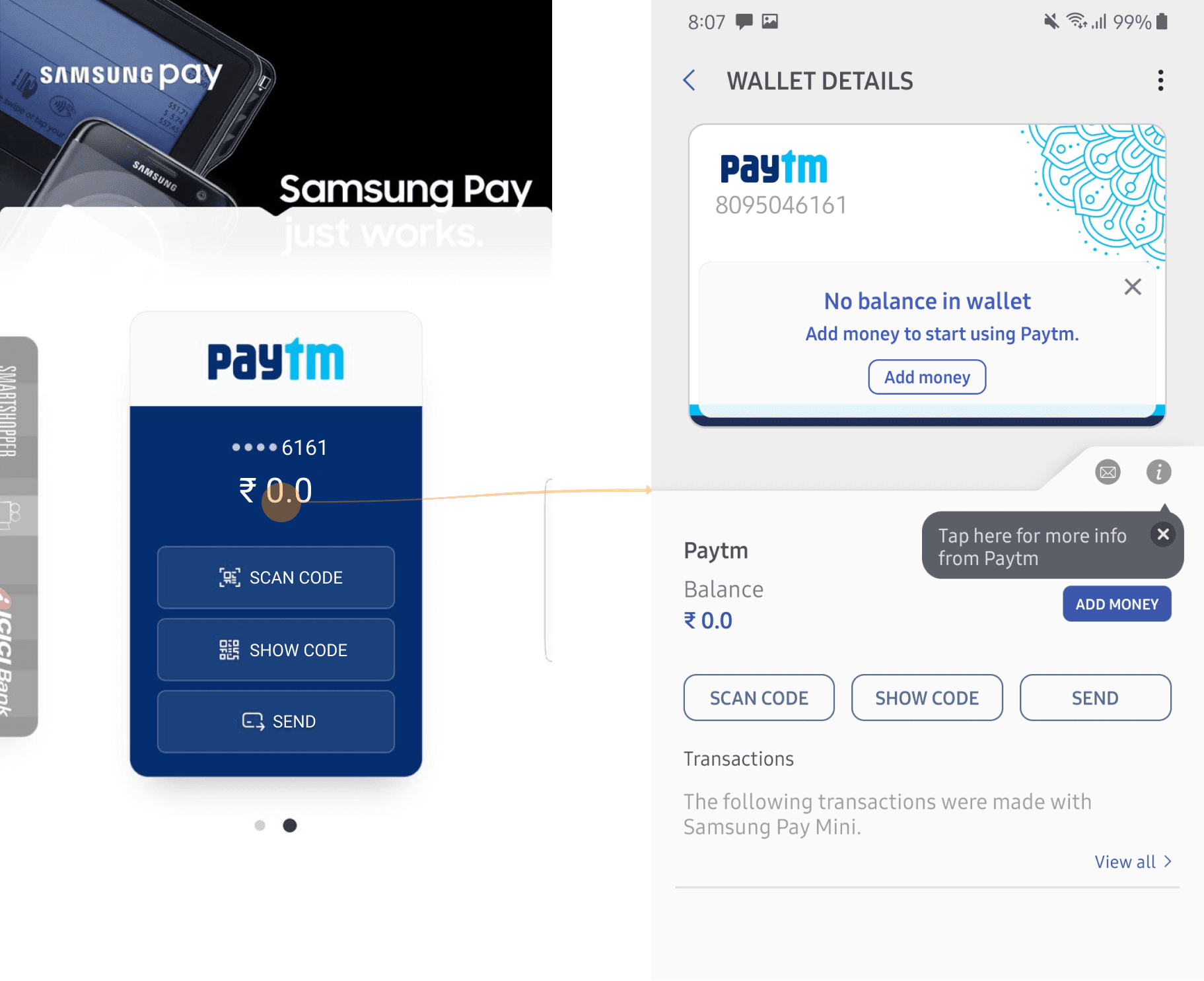 Additionally, in March 2017, Samsung Pay supported several digital wallet services in India with similar requirements to show payment codes within the app without opening multiple apps. These expansions were developed based on the existing concept, resulting in an efficient design process.