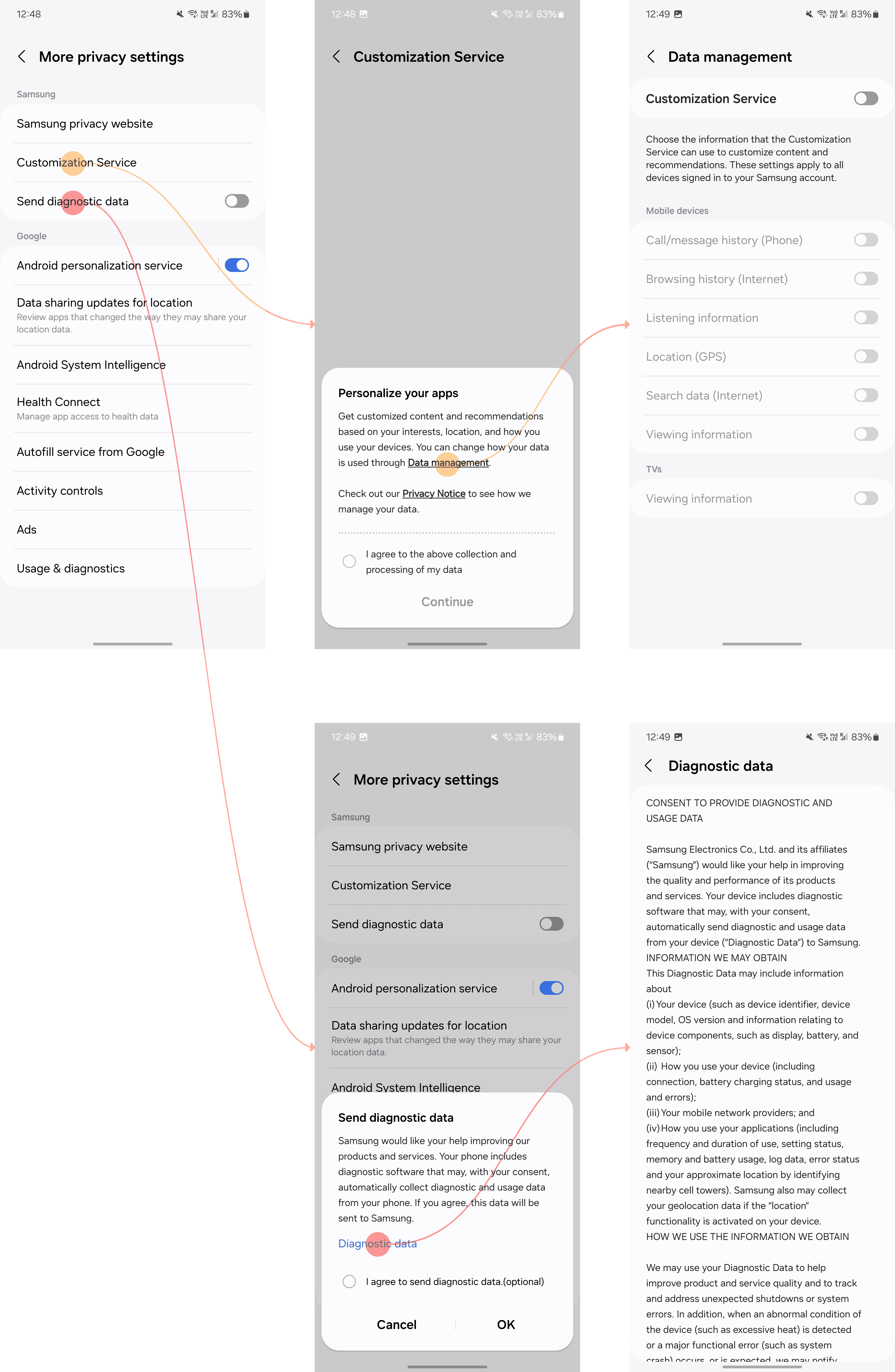 [Usage and diagnostic data collected within Samsung smartphones]
