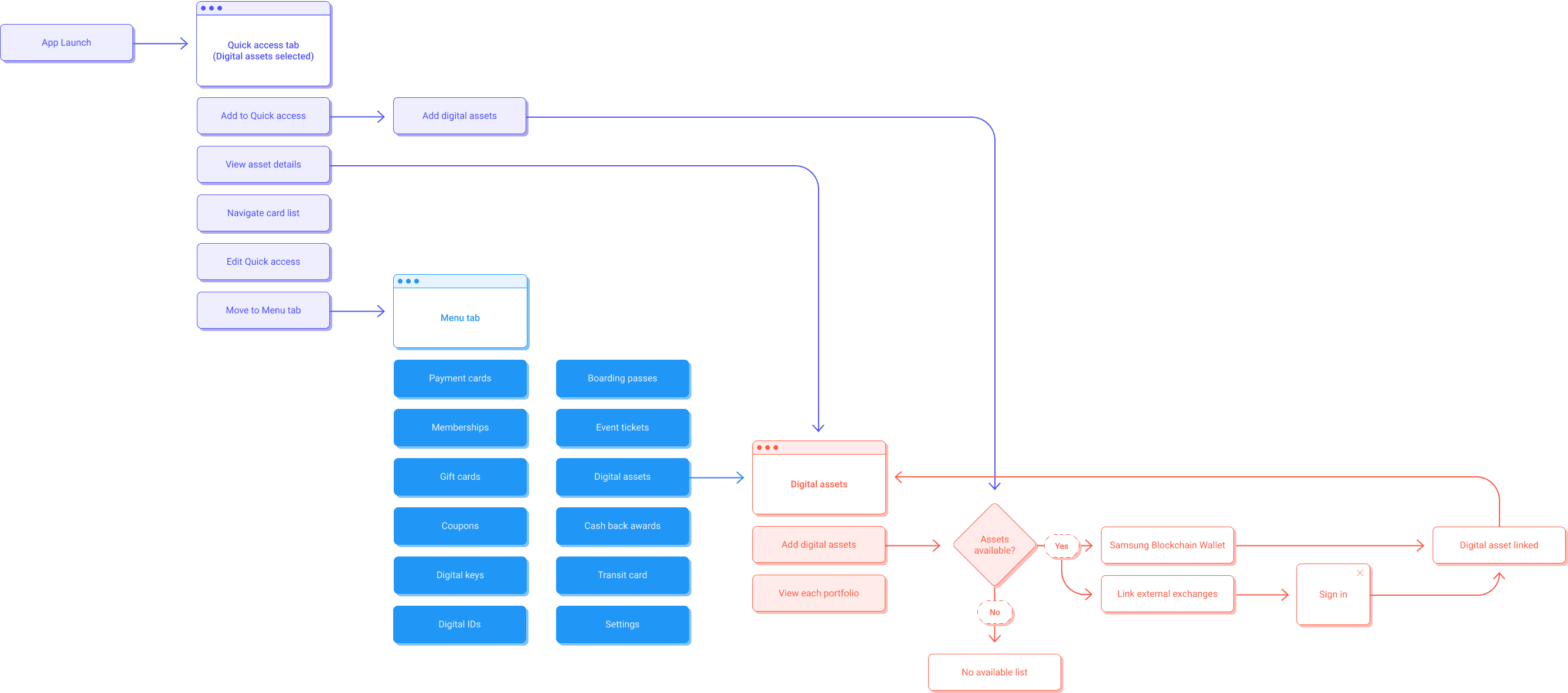In the early stages of the project, I worked closely with the product stakeholders and developers to devise practical solutions to problems. As we progressed, we realized that shifting all blockchain-related features to the new service roadmap might require a more pragmatic approach. Consequently, our team proposed a design strategy to connect external exchanges and our Blockchain Wallet, facilitating a complete view of digital assets.