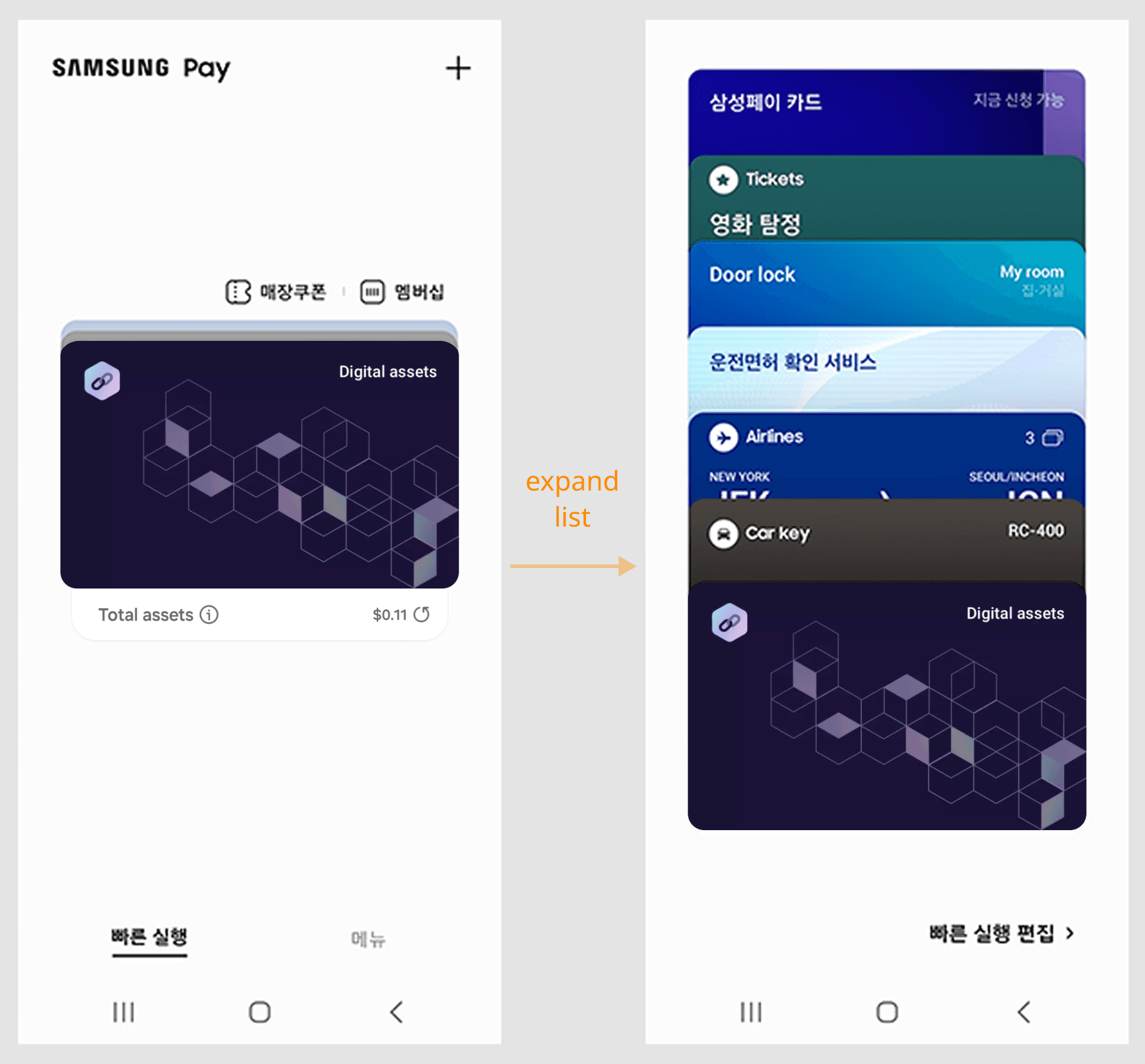 [Blockchain Wallet for Samsung devices(left) and previous Samsung Pay(right)]